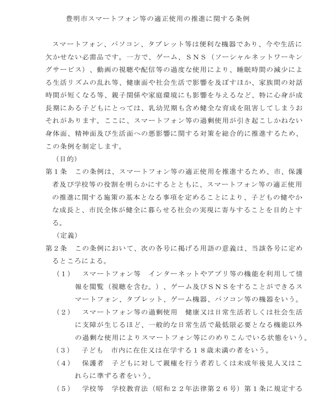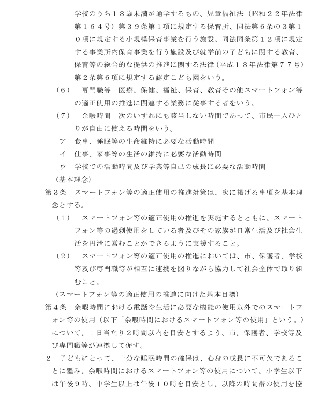 愛知県豊明市で、スマートフォンの使用は1日2時間以内が望ましいという内容の条例が可決されました。罰則や強制力は伴わず、社会的な課題に対して理解を深め、望ましい行動を促すとすることを目的とした条例で、「理念条例」と言うそうです。